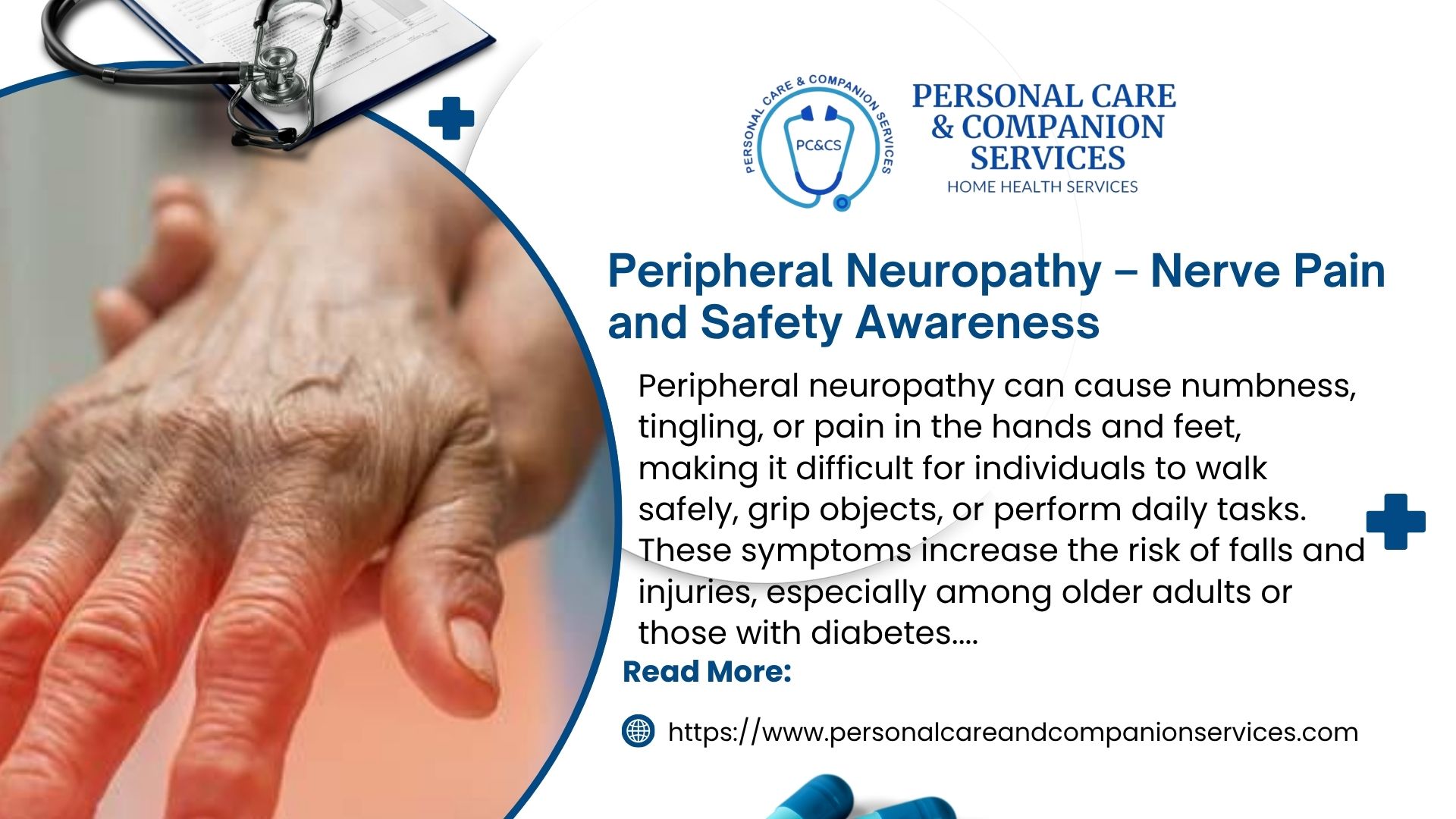 PCCS caregivers provide essential assistance by helping clients maintain balance, ensuring a safe home environment, and supporting gentle movement or exercise as recommended. Through attentive care and safety-focused routines, we help clients remain independent and comfortable while managing nerve-related symptoms.
